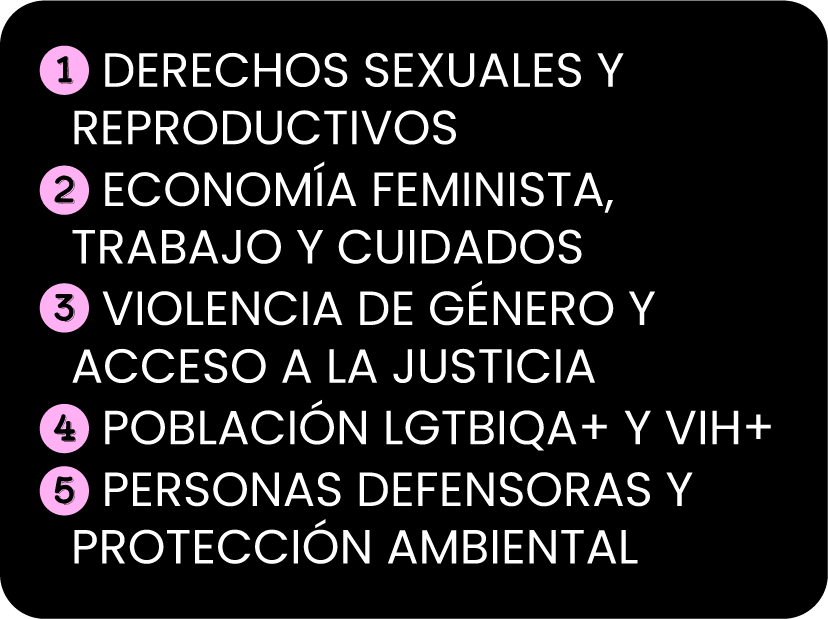 Es una herramienta que pretende visibilizar los posicionamientos de candidaturas y partidos políticos sobre temas relevantes para los sectores feminista, LGBTIQA+, VIH+ y ambiental en este proceso electoral.